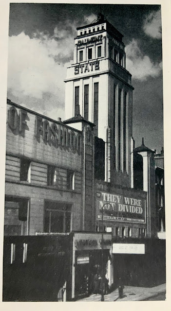 picture theatre with its two imposing towers and coppered domes. The foyer had